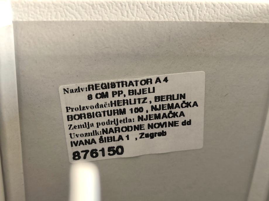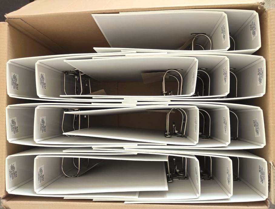 NOVI registratori/ fascikli formata A4, tvrdi široki ( 8 cm ), bijeli, sa otklopnim mehanizmom i stoperom, proizvođač "HERLITZ" Njemačka.