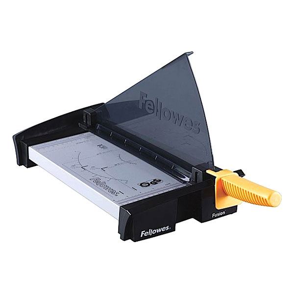 Giljotinski rezač papira do formata A-4 (210x297 mm). Rezač ima zaštitni plastični oklop kako bi se spriječile eventualne ozljede prstiju. Može odjednom prerezati 10 listova papira debljine 80 gr./m2. Oštrica noža izrađena je od nehrđajućeg čelika. Na ploči rezača nacrtani su različiti formati papira i kutovi rezanja.