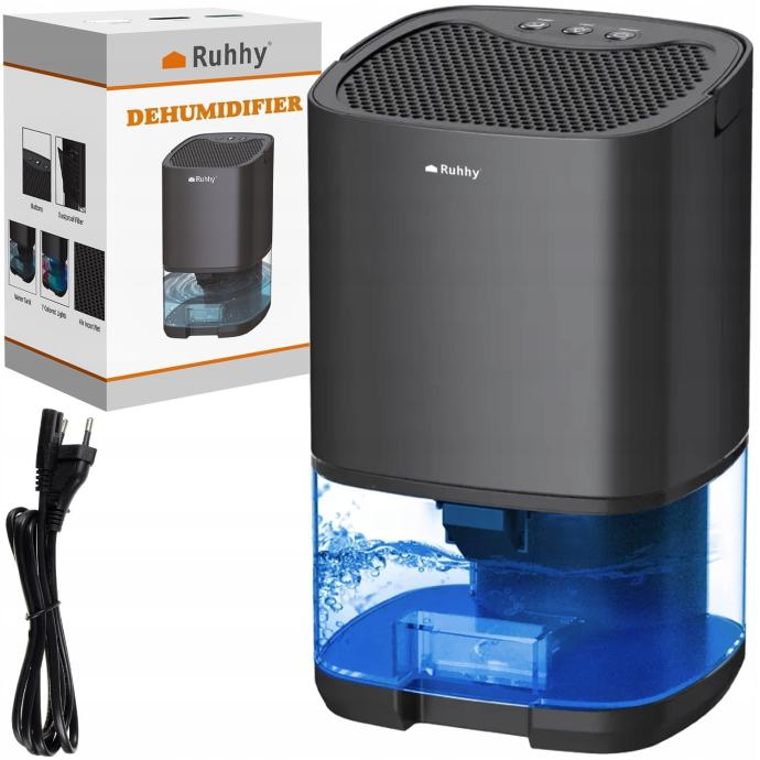 Ušteda energije- odvlaživač 36W osigurava malu potrošnju energije. Upotreba ruhhy zračnog odvlaživača ne opterećuje proračun kućanstva, njegova je učinkovitost dovoljna za učinkovit rad uređaja. To je kompaktna veličina, što znači da ga možete smjestiti bilo gdje u svom stanu: na stolu, ladici ili podu.