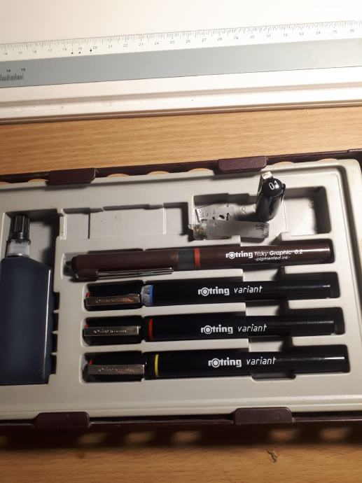 Prodajem rotring rapidografe korišteni godinu dana na faksu nakon korištenja oprani i pospremljeni u kutiju. Uz rapidografe i kutiju dolazi tinta