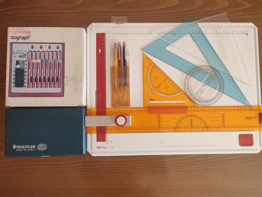 Tko uzme sve na poklon dobiva 2 velika trokuta i rotring tiki tehnicke olovke 0,3 , 0,5 , 0,7 sve korišteno nekoliko puta osim rapidografa cijena-200 eura