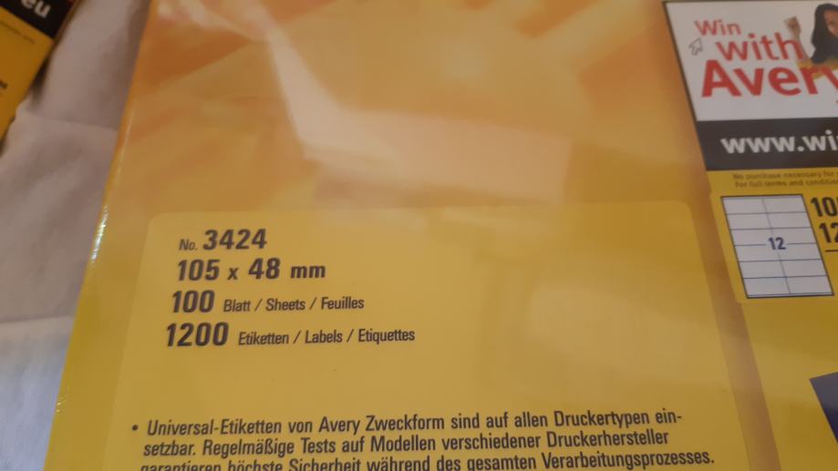 12 etiketa po stranici, 100 listova.
