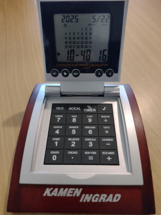 Prodajem sat s alarmom, kalkulator i kalkulator svjetskog sata. Stavljene nove dvije baterije LR 44.