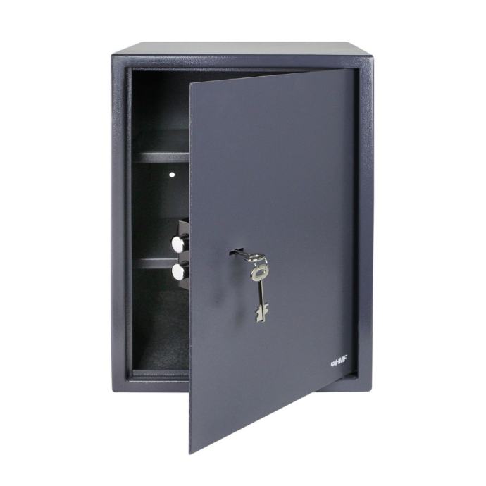 Naš sef je izrađen od čvrste čelične konstrukcije koja jamči izdržljivost i pouzdanost. S debelom stijenkom kućišta od 2 mm i vratima debljinom 4 mm, ovaj sef je gotovo neprobojan. Dvostruko zaključavanje osigurava dodatni sloj sigurnosti, čineći ga gotovo nepremostivim za nepoželjne posjetitelje.