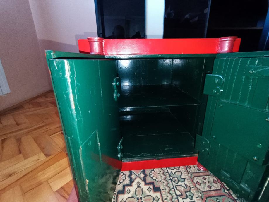 Prodaje se maleni sef. Sef je ručni rad, bio je držan u drvenom okviru. Star je cca 50godina, metalan, malo više od 30kg. Dimenzije su otprilike kao kocka, nekih 45cm plus minus koji cm