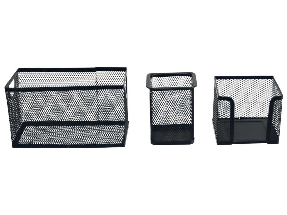 Set 3 Organizatori metalnih stola Black je elegantan i suvremeni dodatak za bilo koji uredski prostor. Njihova crna boja odgovara svakom ukrasu i dodaje dodir elegancije i profesionalizma. Osim toga, njihova kompaktna veličina idealna je za mala radna mjesta jer na stolu ne zauzimaju puno prostora.