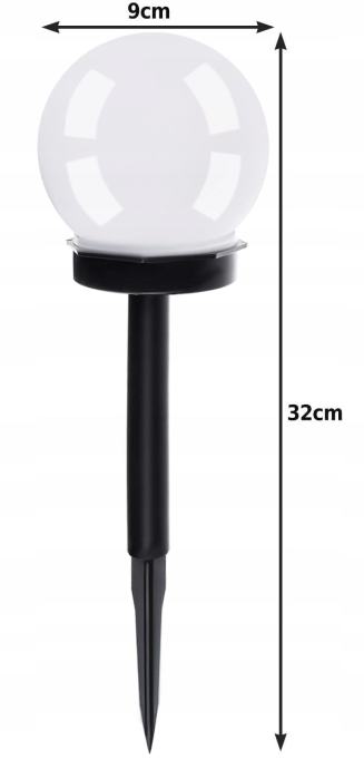 Specifikacija- materijal: plastika; Lagana boja: hladno bijela; Vodootporan: IP 44; Izvor svjetlosti: LED; Radno vrijeme: cca. gumb: uključivanje / isključivanje; Duljina skewera: 10 cm; Dimenzije (visina / promjer): 32x9cm; Težina po komadu: 0,070 kg; Težina kompleta: 0,420 kg; Težina u paketu: 0,667 kg.