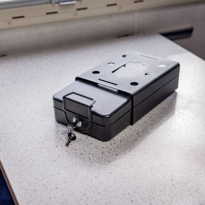 Ova kvalitetna kaseta dolazi s dva ključa za dodatnu sigurnost, pružajući vam mir uma i zaštitu vaših vrijednih predmeta. Klizni okvir omogućuje trajno postavljanje na željeno mjesto, bilo da je to u vašem domu, uredu ili poslovnom prostoru.