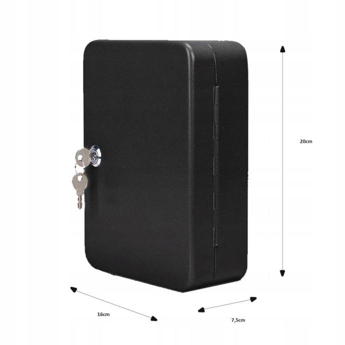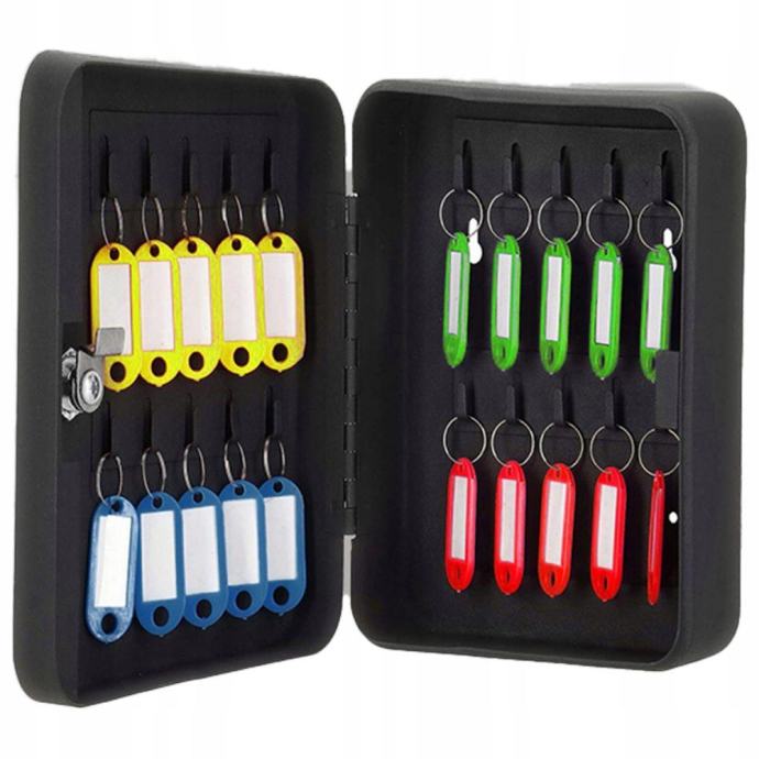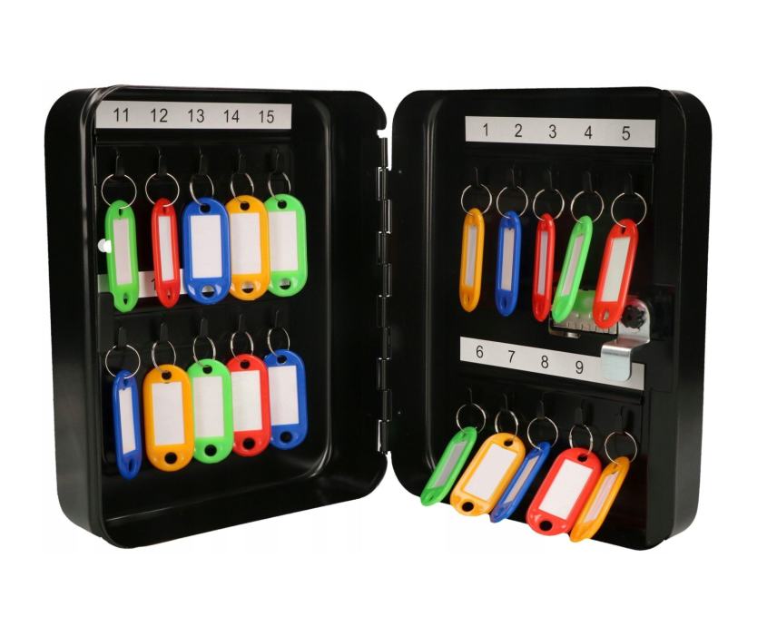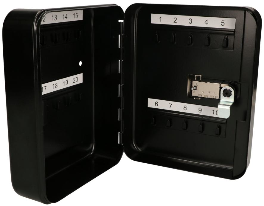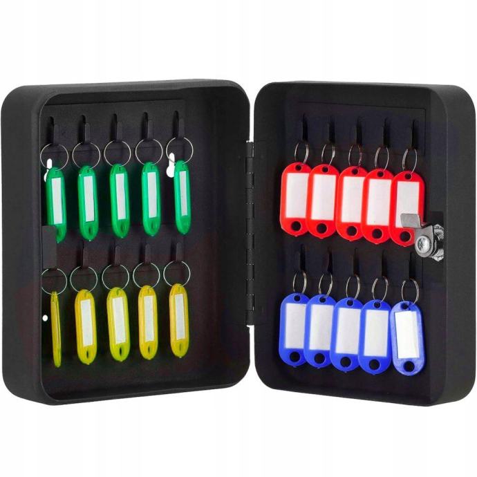 Kabinet ima 20 ključnih kuka koje su pogodne za skladištenje različitih ključeva, poput ključeva za automobile, kuće, urede i druge ključeve. Kabinet također ima sigurnosnu bravu koja osigurava da se ključevi sigurno pohranjuju i pristupaju samo ovlaštenim osobama.