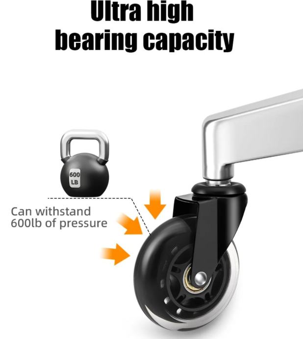 Silikonski kotači podnose iznimna opterećenja a što je najvažnije za razliku od plastičnih ne uništavaju (habaju) parket, drvo, laminat ili bilo koju drugu osjetljivu podlogu. Prilikom "vožnje" na stolicama za razliku od plastičnih kotača silikonski kotači su potpuno tihi a podstanari koji se nalaze stan ispod više neće imati problema s vašim vozanjem tamo amo na stolici i biti će vam zahvalni.
