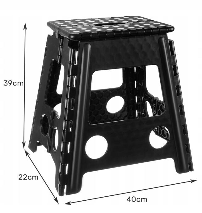 Potpuno sklopiva stolica, vrlo jednostavna za prijevoz i pohranjivanje. Proizvod je opremljen slojem protiv klizanja, što ga čini sigurnijim. S platformom ćete doći do visoke police, obojiti strop tijekom obnove, objesiti luster ili objesiti zavjese. Proizvod je također izvrstan kao platforma za djecu - na primjer, za postizanje sudopera.
