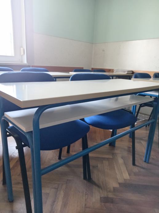 Osam školskih klupa i 16 tapeciranih stolica u odličnom stanju. Klupe se mogu koristiti kao stolovi na terasama, prodaja moguća i pojedinačno.