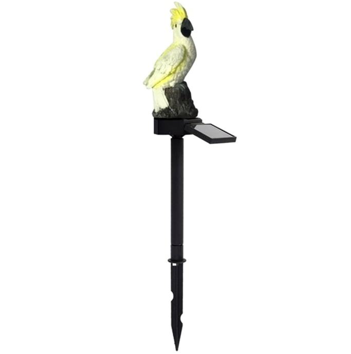 Neobična, solarna LED vrtna svjetiljka u obliku kakaa papiga. Savršeni ukrasni element. Svjetiljka se napaja solarnom energijom koja je uz pomoć solarne ploče puna ugrađene baterije. Uređaj se automatski uključi kada je uzemljenje (opremljen sumrakom) i puna baterija dovoljna je za do 8 sati kontinuiranog rada. Svjetiljka ima LED koja emitira bijelu svjetlost. Snažan savjet omogućava da se svjetiljka ugradi na sigurno i brzo, a vodootporno kućište omogućuje glatku upotrebu bez obzira na vremenske prilike.