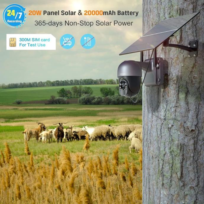 Zaboravite na brigu o napajanju! Naše kamere dolaze s ugrađenim baterijama kapaciteta 20000 mAh i solarnim panelima od 20 W, osiguravajući stabilan rad čak i u uvjetima s manjkom sunčeve svjetlosti.