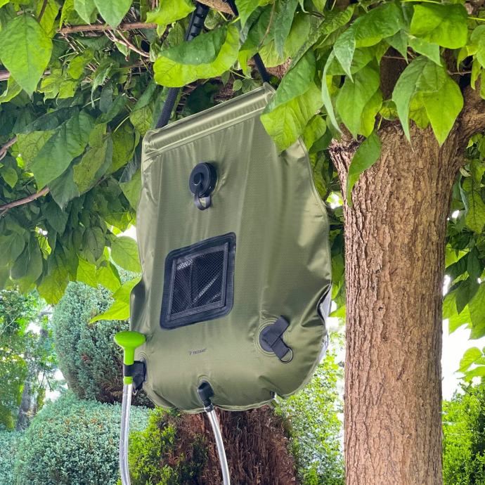 Ovaj solarni tuš dizajniran je za brzi i jednostavan izgled. Jednostavno je napunite vodom, objesite je u prikladnom prostoru poput stabla ili visećeg nosača i ostavite da zagrije solarnom energijom. Nakon što voda dosegne optimalnu temperaturu, jednostavno upotrijebite raspršivač za udobno tuširanje.