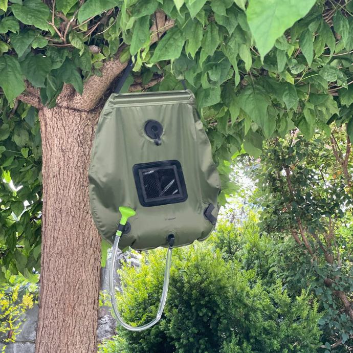 Solarni tuš je kompaktan i jednostavan za nošenje, što znači da ga možete lako ponijeti sa sobom za kampiranje, planinarenje ili bilo koju drugu aktivnost na otvorenom. Kad se ne koristite, možete ga saviti i spremiti, štedeći prostor.