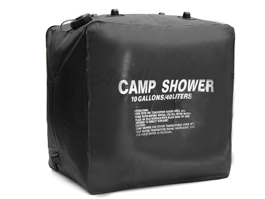 Viseći kampiranje tuširanja kapaciteta do 40 litara. Bit će sjajno za bilo koji kampiranje, putovanje i zavjeru. Nezadovoljni svugdje gdje upotreba tekuće vode nije moguća. Posebni materijal omogućava da voda zagrije na ugodnu temperaturu.