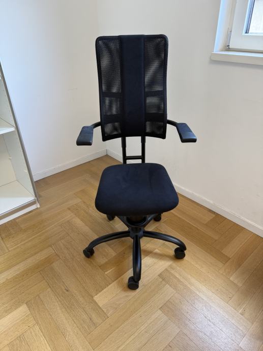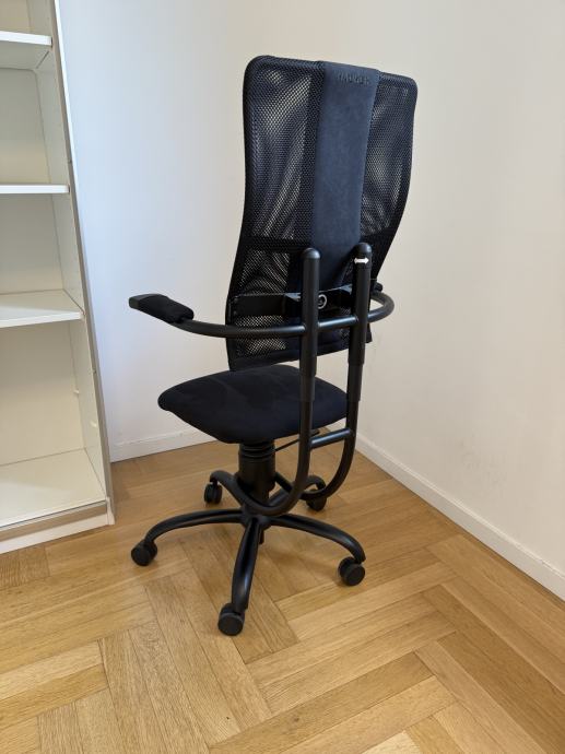 Spinalis Hacker ergonomska uredska stolica, jako malo korištena; prodaje se jer je radno mjesto ukinulo nakon mjesec dana i otada stolica stoji neupotrebljavana.