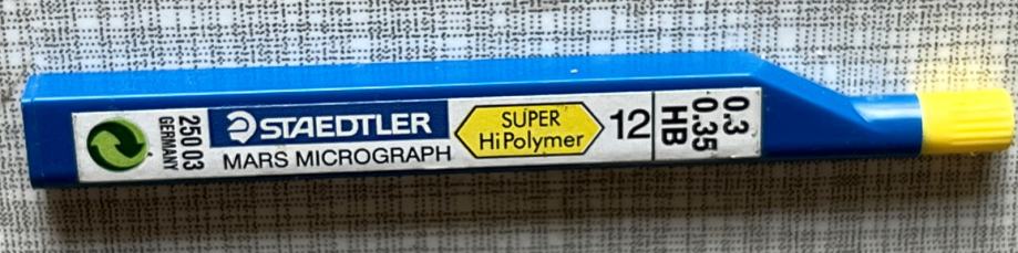 PRODAJEM „STAEDTLER“ MARS MICROGRAPH SUPER HI POLYMER MINE TVRDOĆE HB ZA TEHNIČKU OLOVKU DEBLJINE 0,3 mm. KUTIJA IMA 12 MINA.