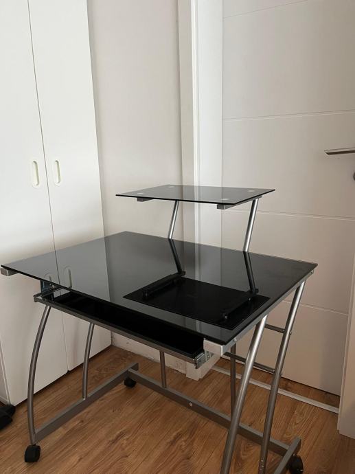 Prodajem stakleni stol za kompjuter na kotačiće, u odličnom stanju.