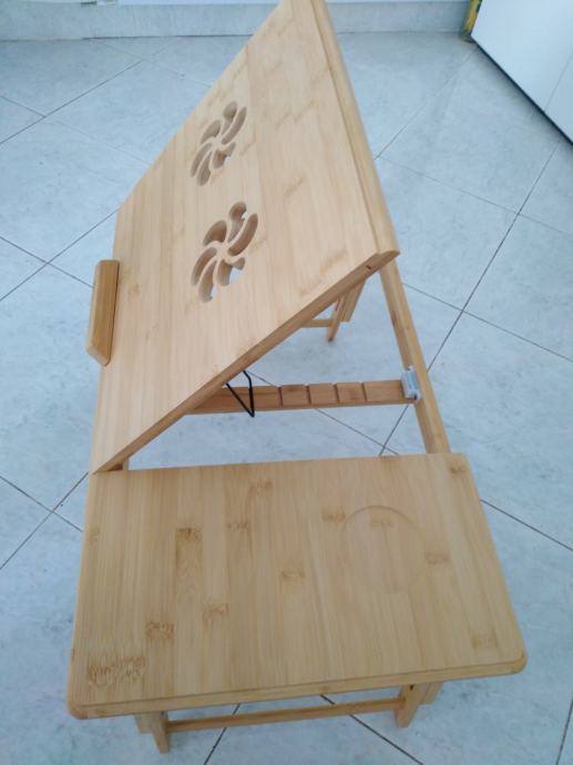 STALAK ZA LAPTOP, drveni, podesivi po visini, nov, tek kupljen, dim. 55 x 35 cm, visina po odabiru, na slici namješten na 27 cm.... 095 1979432