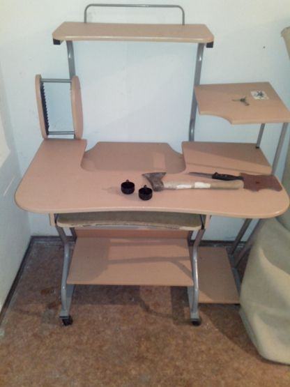 stol za kompjuter, iverica i aluminij, dezen bukva u dobrom stanju povoljno prodajem ili mijenjam za razno