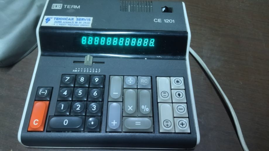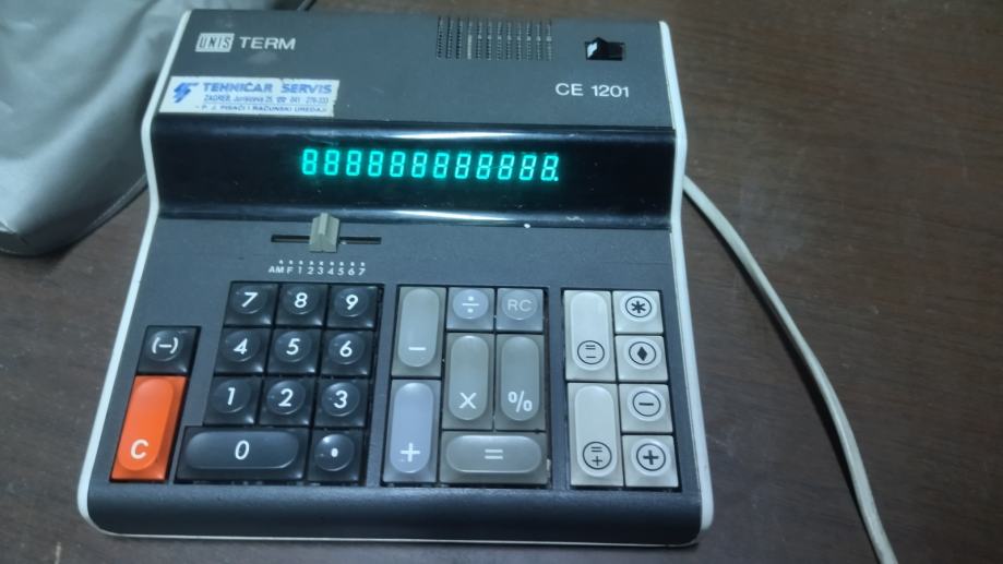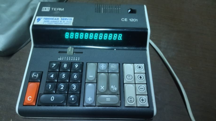 Stolni kalkulator UNIS CE 1201 licenca Olympia sa originalnom zaštitnom navlakom. Dosta dobro očuvan. Poluispravan, ne mogu ga dobiti da zbraja i oduzima. Ostalo radi.