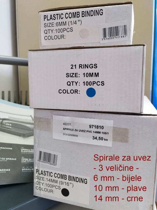Prodajem malo korišteni stroj za spiralni uvez, te materijal za uvezivanje.
