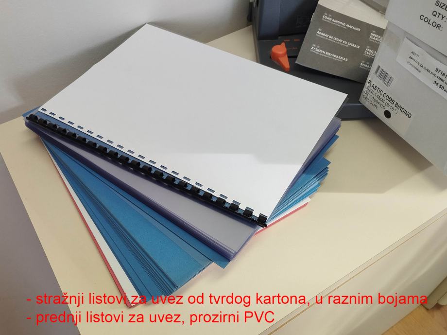 - stražnji listovi za uvez od tvrdog kartona, u raznim bojama
