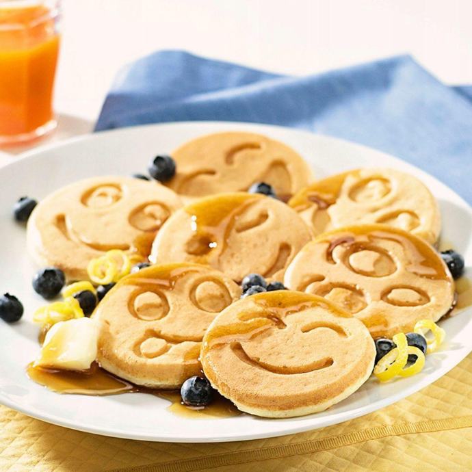 Zahvaljujući ovom proizvodu, možete stvoriti zanimljive doručke koji imaju za cilj učiniti jutro ugodnijim i veselim. Tava sa sedam jedinstvenih lica obogatit će vam svakodnevni život na zabavan način. Smiješni emoj palačinke potaknut će djecu da jedu, a posebno utisnuti krugovi pomoći će pripremiti palačinke savršenog oblika i spriječiti ih da se prolije po cijeloj tavi.