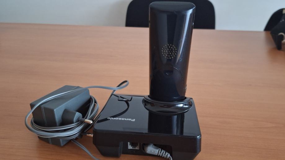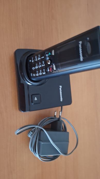 Telefon Panasonic, crni, punjač, kabel