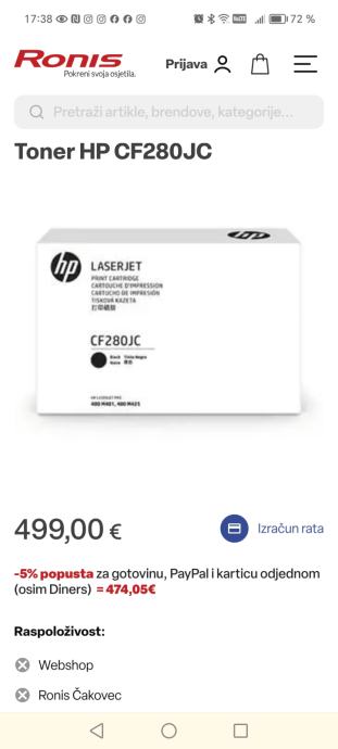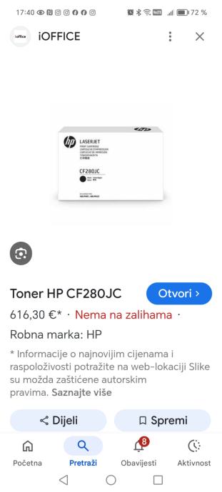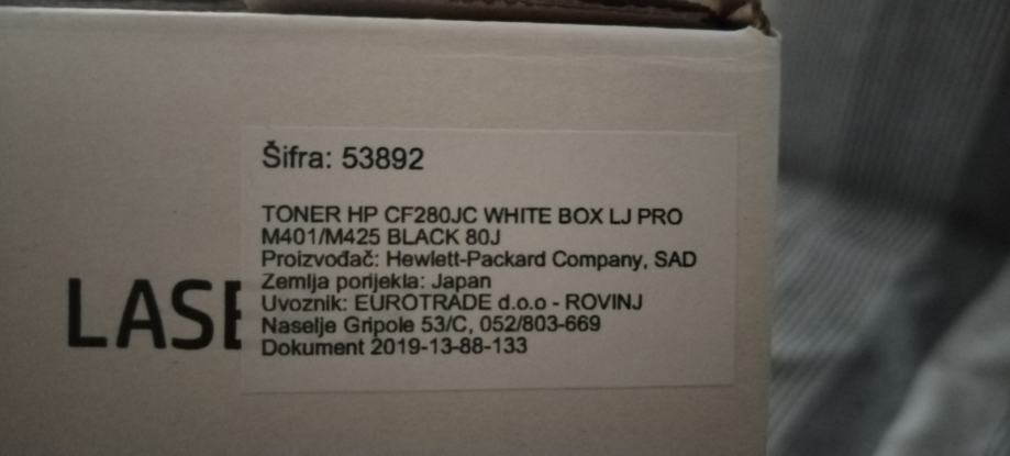 Prodajem original toner HP iz naslova oglasa. Samo je otvorena kutija, krivo je kupljen a u međuvremenu promijenjen i printer pa ovaj više ne odgovara. Cijena vrlo povoljna jer su na netu i po 500 eura. Sve je na slikama.