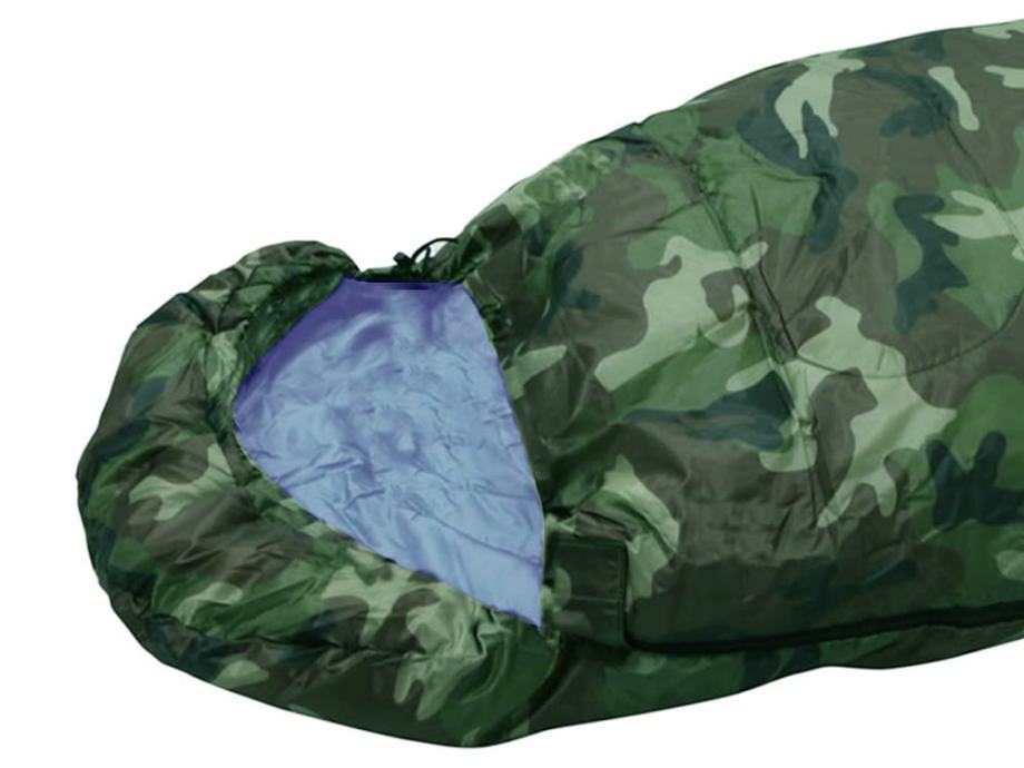 Vreća za spavanje opremljena je haubom koja dodatno povećava zaštitu od hladnoće može se zategnuti i podesiti s zatvaračem za žice ne otvara se, vreća za spavanje ima dodatno čičak zatvaranje.
