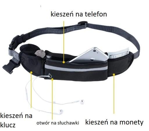 Pojas ima veliki središnji džep koji se zatvara zatvaračem i manjim bočnim džepom koji se zatvara jež.