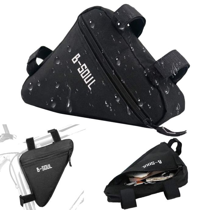 Univerzalna biciklistička torba koja je montirana na okvir kotača. Izuzetno korisno pri putovanju biciklom. Možete nositi male stvari poput novčanika, ključeva ili telefona. Napravljen od visokokvalitetnih materijala, pričvršćen je na jež.