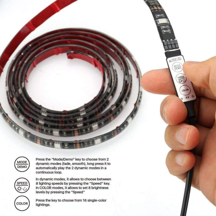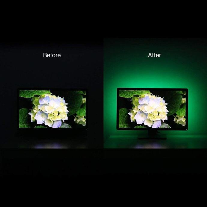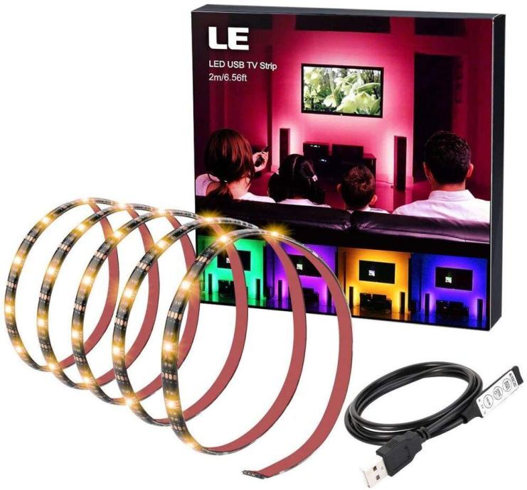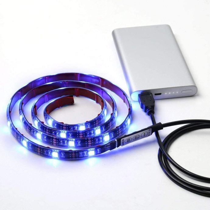 Lampica dugovana dva metra ima 60 LED -ova, svaka od svaka mjerenja 5 x 5 mm, a djeluje na 10 vata. Na primjer, s ljepljivom vrpcom pričvršćenom na stražnju stranu, možete pružiti vrh i strane 42-inčnog LCD TV-a ili plazma TV-a ili zaslona računala širine od 93 cm i 52 cm visoke s ovom svjetlosnom svjetlošću.