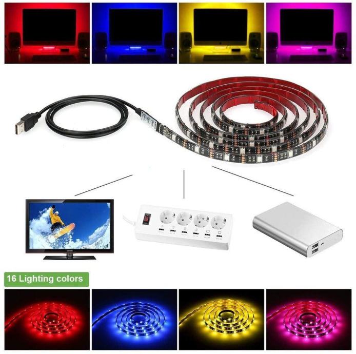 TV 5050 LED Strip RGB 2M USB IP65 - TV rasvjeta