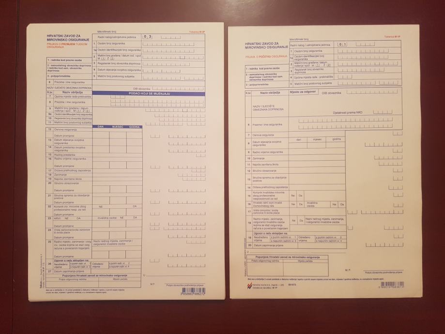 HZZO prijava o promjeni osiguranja M-3P - 0,30 € (27)