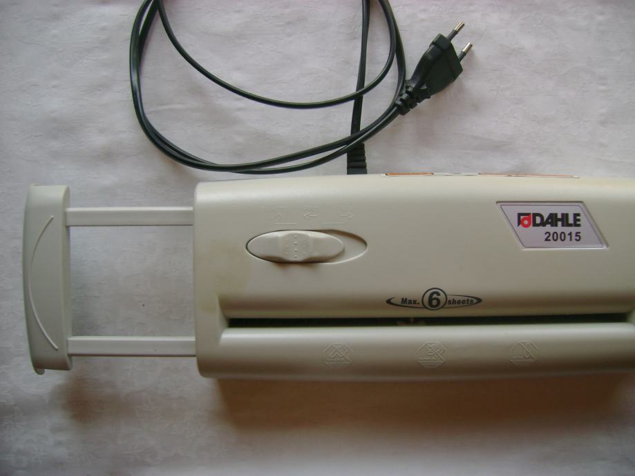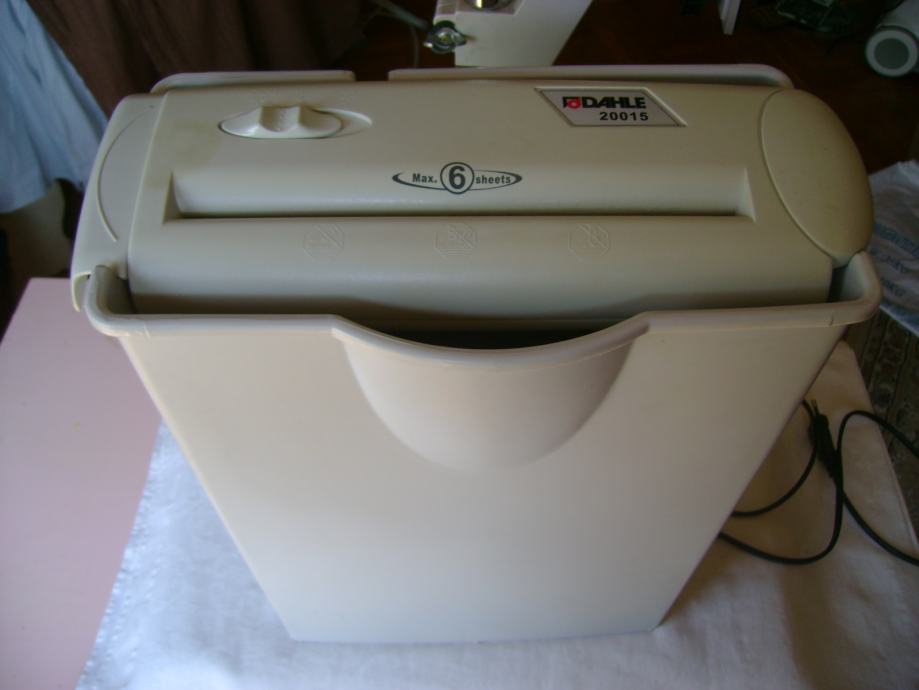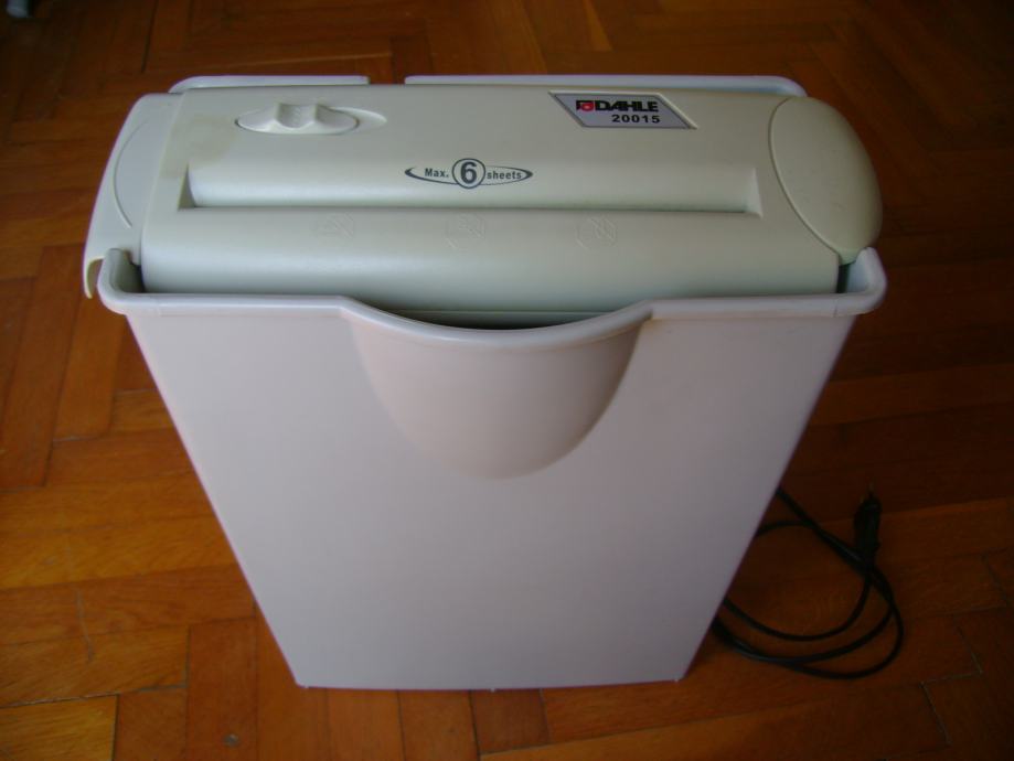 Uništavač dokumenata / rezač papira / shredder - Dahle 20015 - korišten u uredu, širina ulaza 22 cm, reže maksimalno 6 listova odjednom, ima prekidač za vrtnju unaprijed i unatrag, koš je veličine 30 x 15 x 36 cm - stanje je vidljivo na slikama