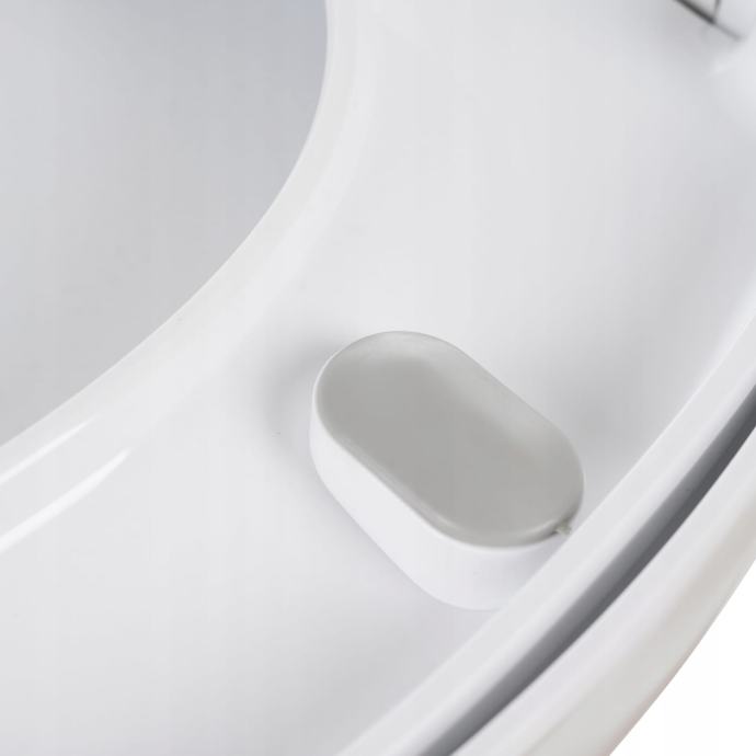 Sigurnost i udobnost- mekani toalet za zatvaranje opremljen je šarkama od nehrđajućeg čelika koje su otporne na koroziju i deformaciju, pružajući dugotrajan i besprijekoran rad. Zahvaljujući sustavu slobodnog pada, ploča se polako i tiho zatvara, uklanjajući rizik od prstima prstima, što je posebno važno kod djece. Tihi mehanizam i četiri odbojnici visokokvalitetne termoplastične gume (TPR) također sprječavaju snažan utjecaj sjedala na WC zdjeli, što povećava udobnost upotrebe, posebno noću. Osim toga, zaustavljači sprječavaju da se ploča kreće tijekom upotrebe. Prevlaka za toaletna ploča ima ovratnik koji u potpunosti štiti unutarnji prsten od oštećenja, a dva odbojnici pružaju tiho zatvaranje preklopa na prstenu ploča.