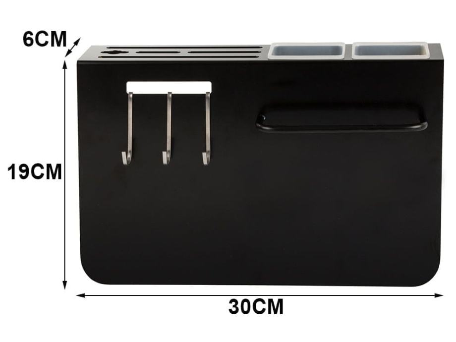 Organizator je postavljen na zid, što može uštedjeti puno prostora na kuhinjskom pultu. Može se instalirati s ljepilom ili mozgama i vijcima koji su pričvršćeni na komplet.