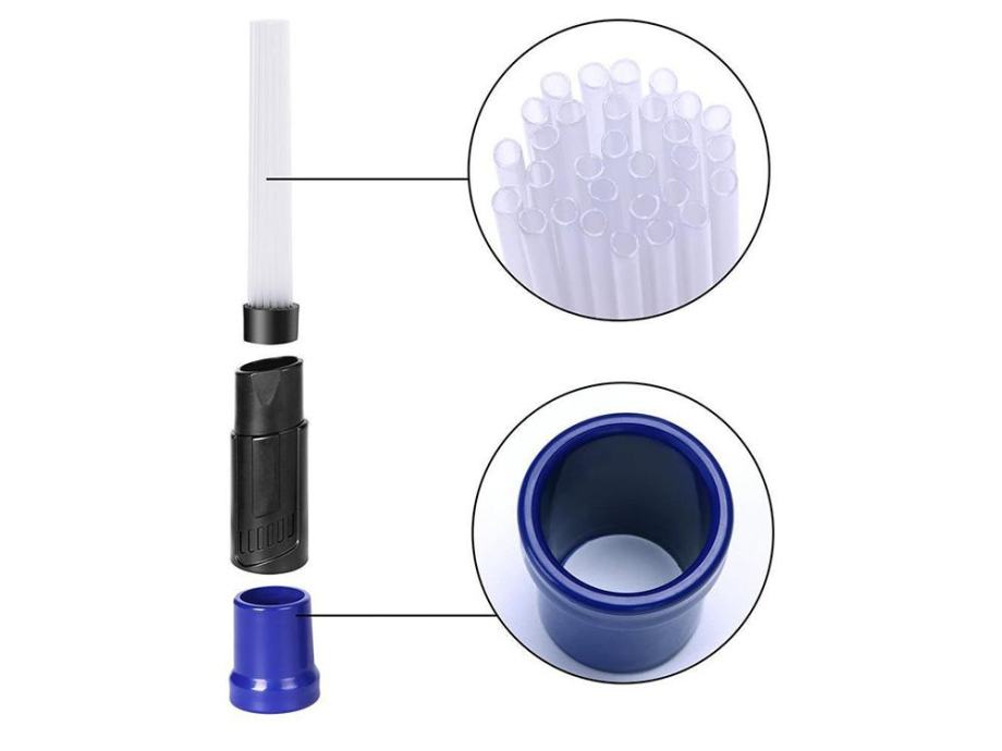 Prilog je opremljen s 30 mini -plastičnih epruveta koje će dostići najteže sisati. Svaka cijev ima promjer od 3 mm. Savjet je prikladan za gotovo svako sredstvo za čišćenje vakuuma, promjer otvora ulaza je 30 mm.