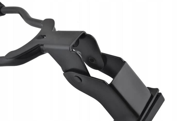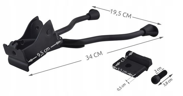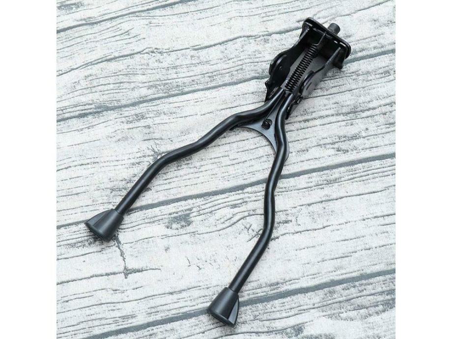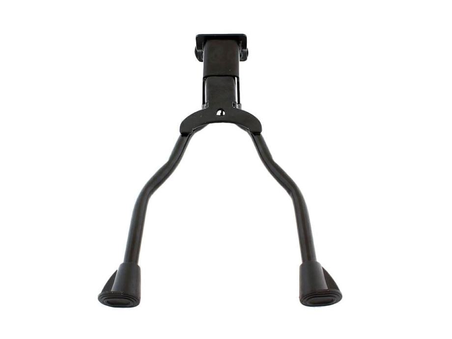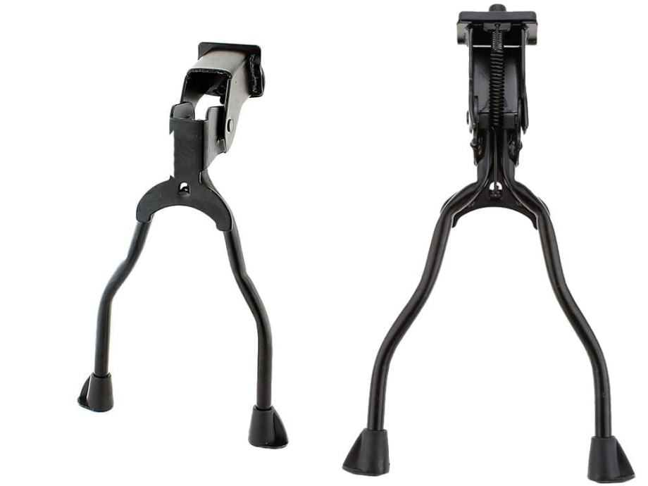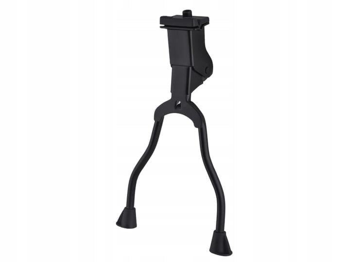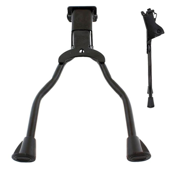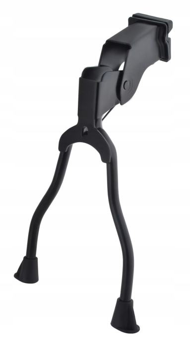 Dvostruko metalno biciklističko stopalo za pričvršćivanje na stražnju stranu kotača (između stražnjeg kotača). Središnji sklop, s vijkom. Komplet ima razmak koji štiti kotač od ogrebotina prilikom ugradnje noge i podizanja nogu (mogućnost uklanjanja razmaka).