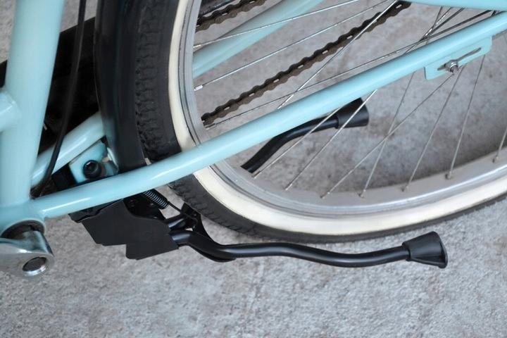 Zahvaljujući dvostrukim nogama, bicikl je stabilniji i lakši, na primjer, tijekom popravka ili punjenja guma. Na kraju jastučići protiv klizanja.