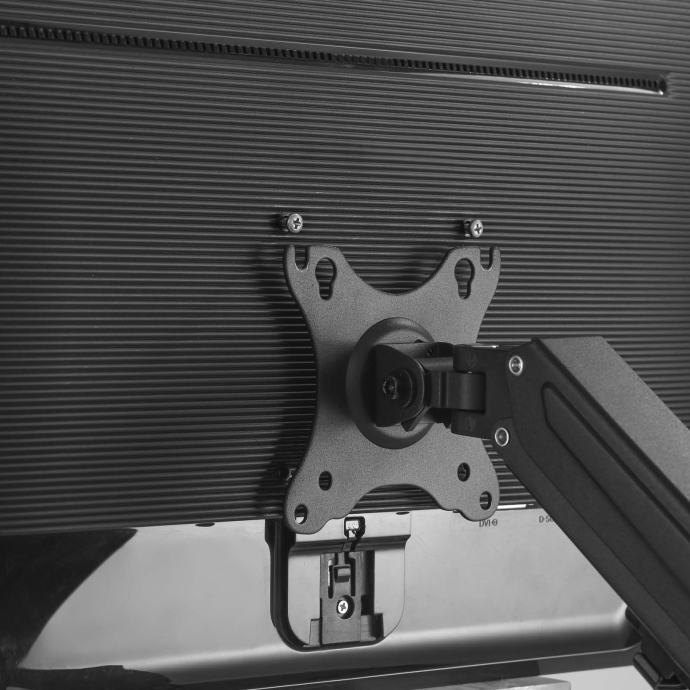 Nosač monitora opremljen je oprugom tlaka plina, tako da ga možete glatko i tiho pomicati. Iako se redoviti nosači na ruci s opterećenjem moraju podesiti, ovaj je model dovoljan za lagano povlačenje ili pritisak na rubu zaslona. Stoga je pojedinačno podešavanje visine, nagiba i rotacije još ugodnije. Kako bi se osiguralo da je monitor siguran na držaču, VESA ima 100 x 100 mm i 75 x 75 mm.