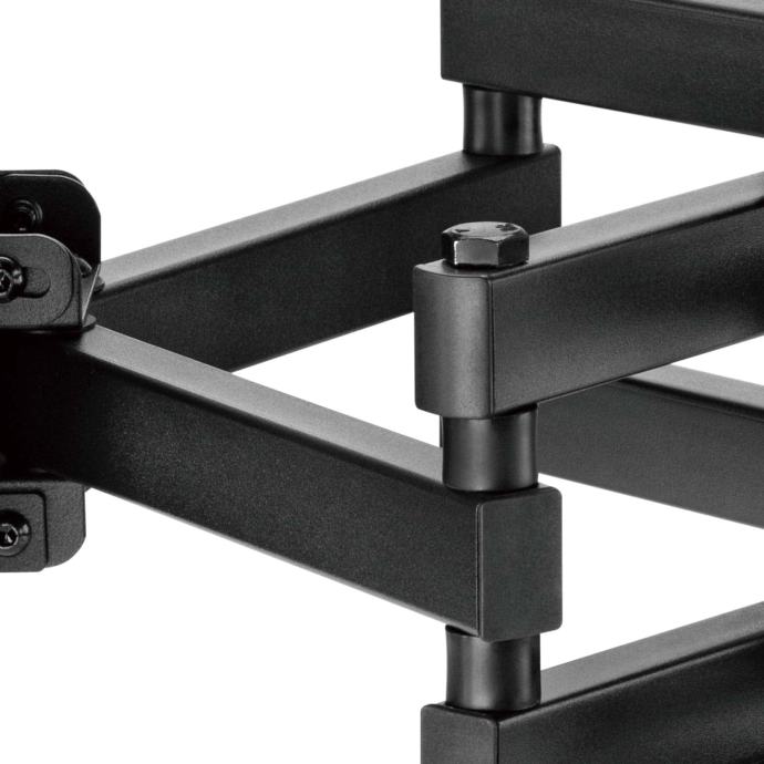 Podržavanje ruku pružaju optimalnu raspodjelu težine tako da nosač može prevoziti televizore do 40 kg. Čvrsti robusni nosač zida pogodan je za većinu LED -ova, LCD -a, plazme, zakrivljenih i ravnih zaslona s dijagonalom zaslona od 37 do 80 inča (94 do 203 cm).