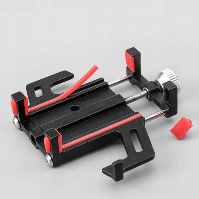 Cijela ručka izrađena je od čvrstog aluminija. Otporan je na udarce i lagane izbočine koji se mogu dogoditi tijekom vožnje biciklom. Vijani nosač osigurava da čak i kada se izbočine koje se prirodno javljaju tijekom vožnje, telefon neće izvući iz držača - dodatna sigurnosna funkcija je silikonski nosač koji se može protezati preko uglova telefona.