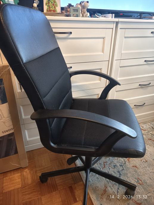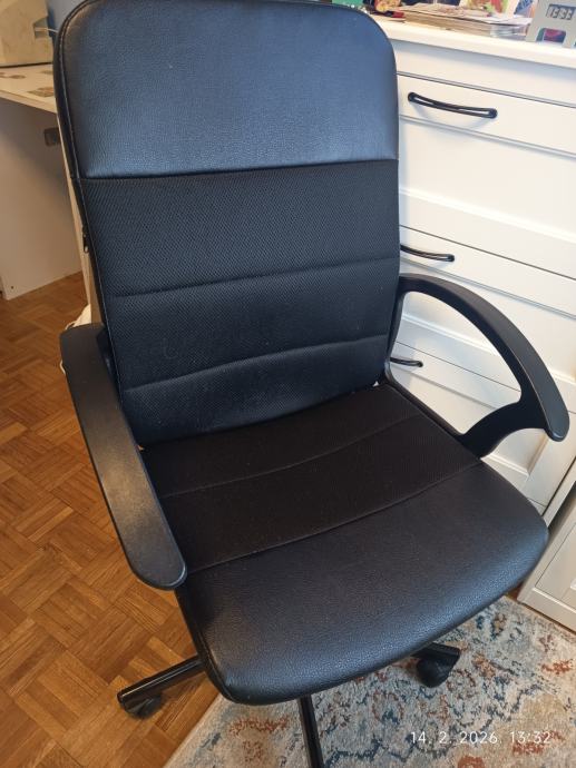 Uredska stolica crna, s hidraulikom za regulaciju visine, kao nova, minimalno korištena, kombinacija koža/tkanina, superpovoljno, Novi Zagreb Utrina