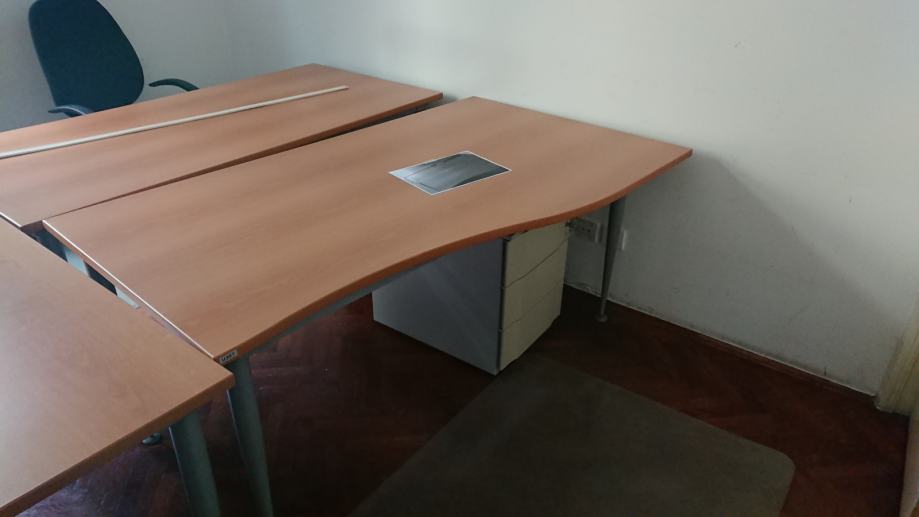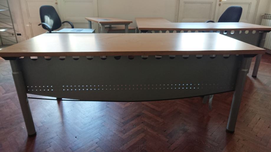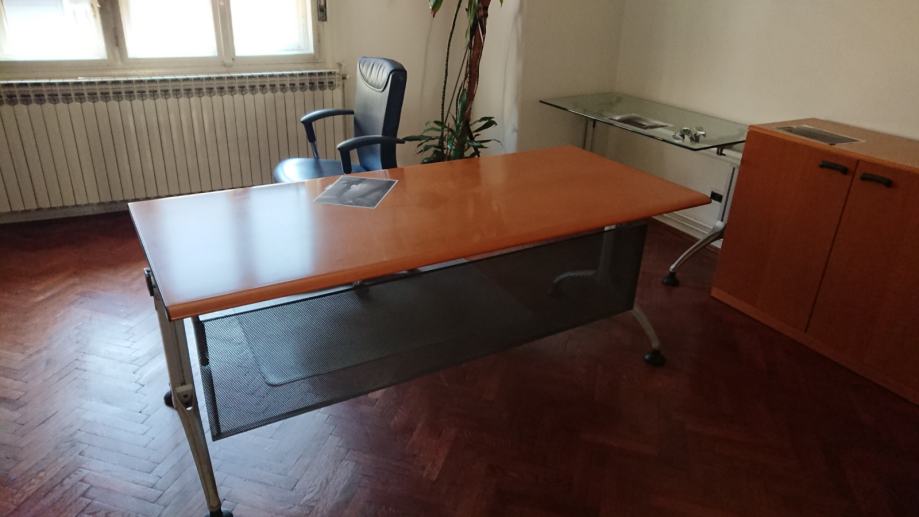 Prodajem uredski namještaj visoke kvalitete talijanskih proizvođača; stolovi raznih dimenzija, ormari, stolice, ladičari, sve zajedno ili pojedinačno. Namještaj je u odličnom stanju, daske stolova imaju garanciju na trošenje. Navedena cijena je proforma, cijena na upit na dodatni broj telefona.