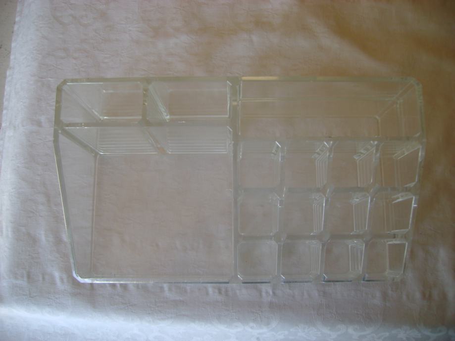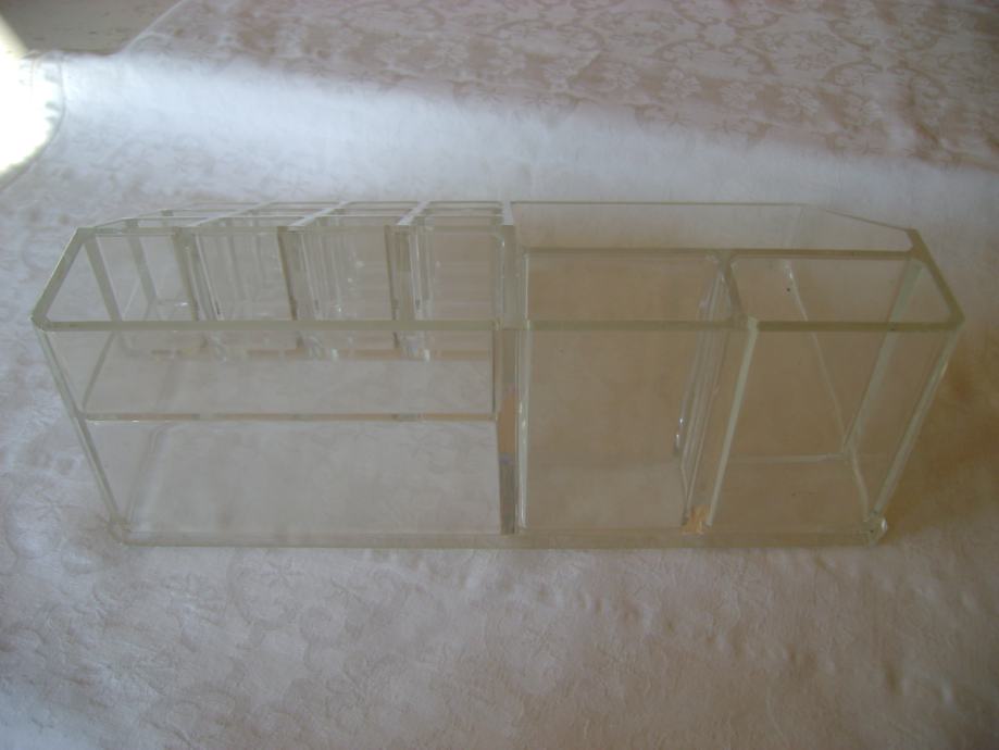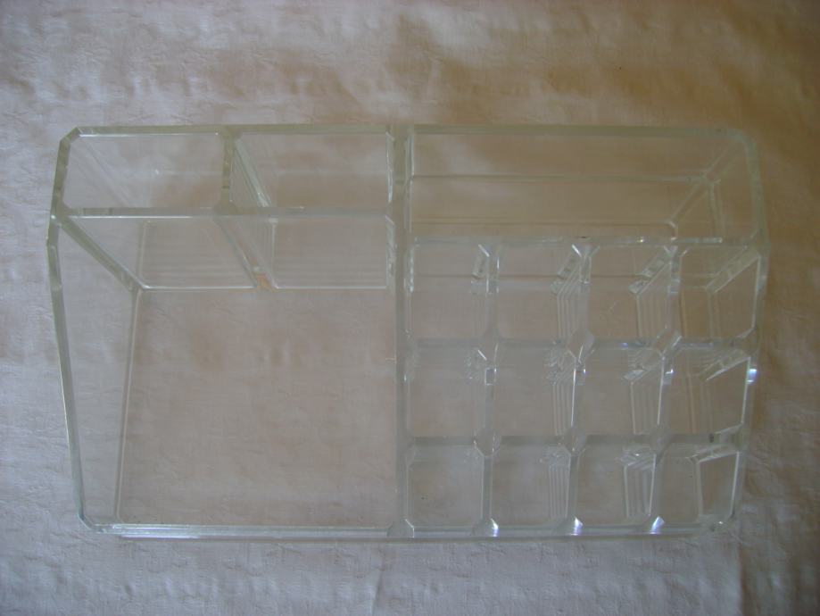 Uredski organizator za sitnice, stakloplastika, dimenzije cca 22 x 13 x 8 cm, korišten, odlično očuvan, bez oštećenja - stanje je vidljivo na slikama.